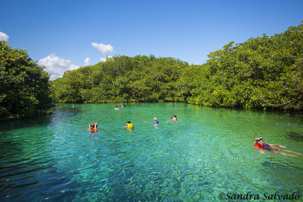 Differently from the usual cenotes Casa Cenote is not surrounded by alamo trees and lush vegetation, but by a thick mangrove forest.