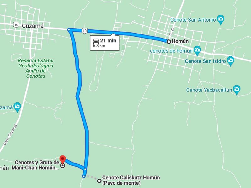 Here below we’ll show you the Google Maps Screenshot for your convenience. As you can see, Cenote Caliskutz is located near Cenote Mani Chan and Cleotilda which you should also visit, right after.