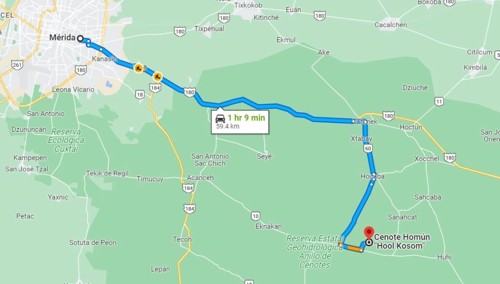 You will find the town of Hocabá and then you will arrive in Homún. In Hocabá there is a greengrocer very well stocked with local products.