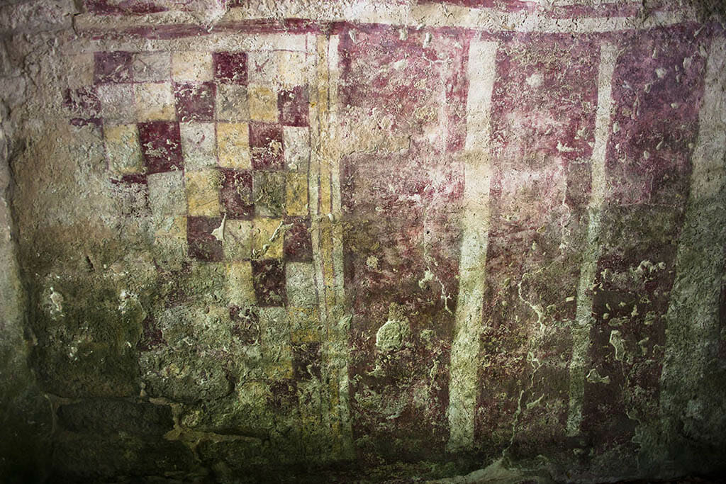 A 540-meter path leads us to what is known as Grupo Jaguar, where we can appreciate the other mural paintings. On this road, you will see a cenote close to the structures.